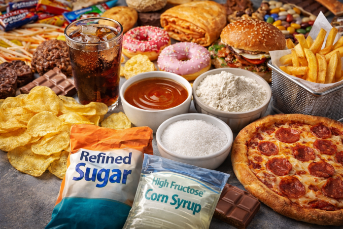 Illustrative image of ultra-processed foods and refined ingredients such as sugar, high fructose corn syrup, and white flour, which are at the center of a petition calling for renewed FDA review.