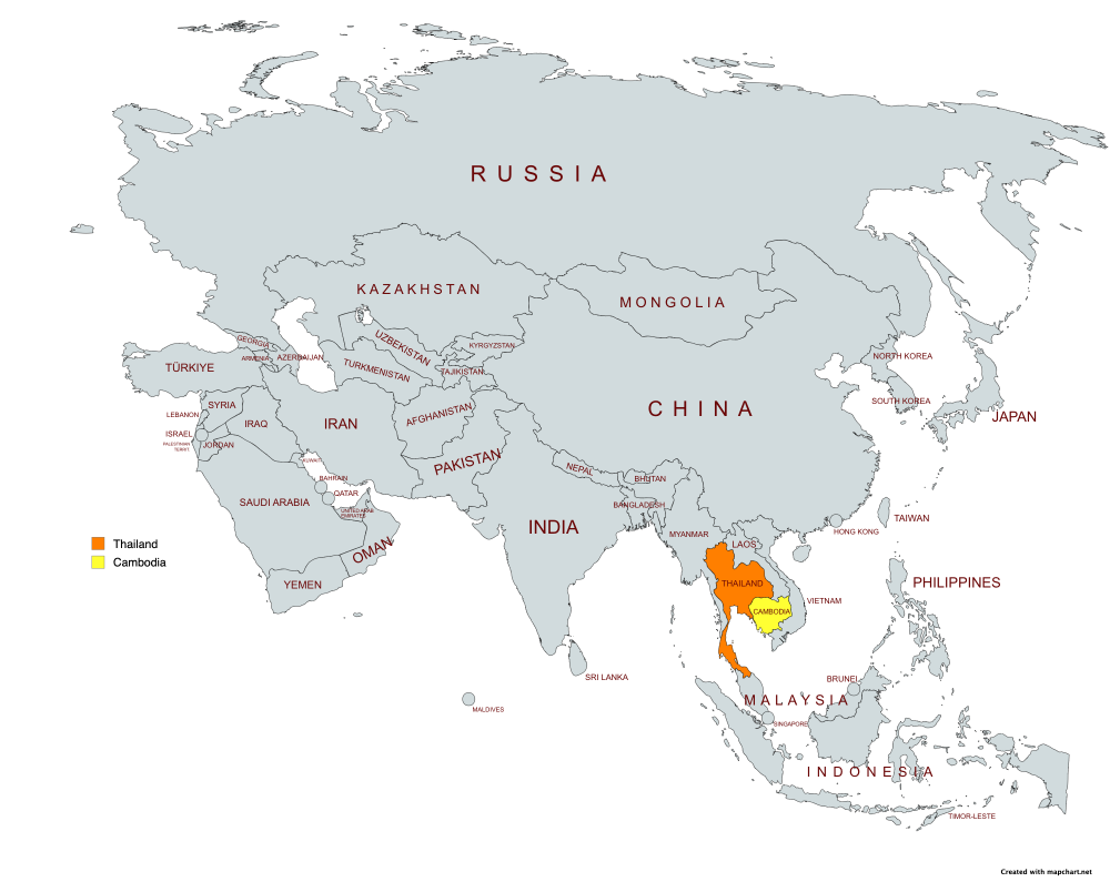 Yellow = Cambodia