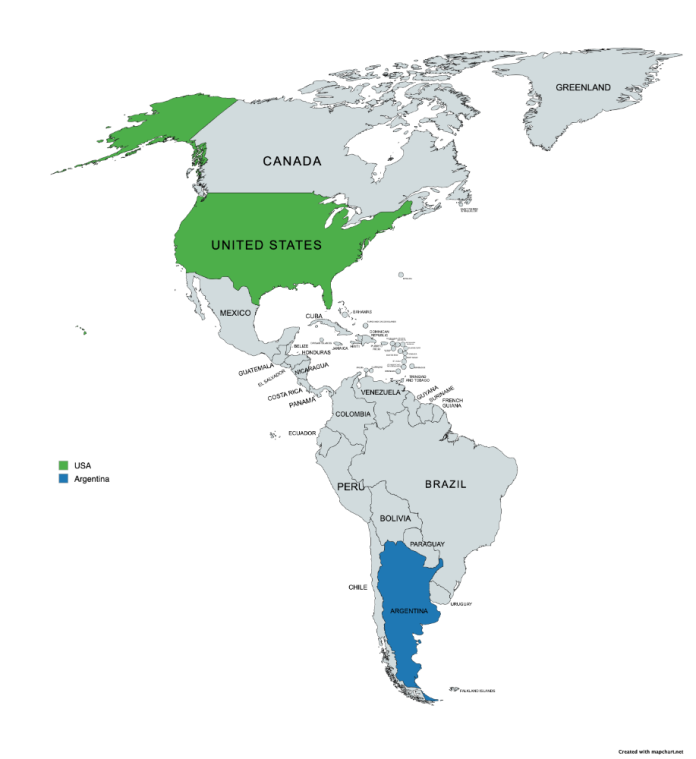 USA = Green