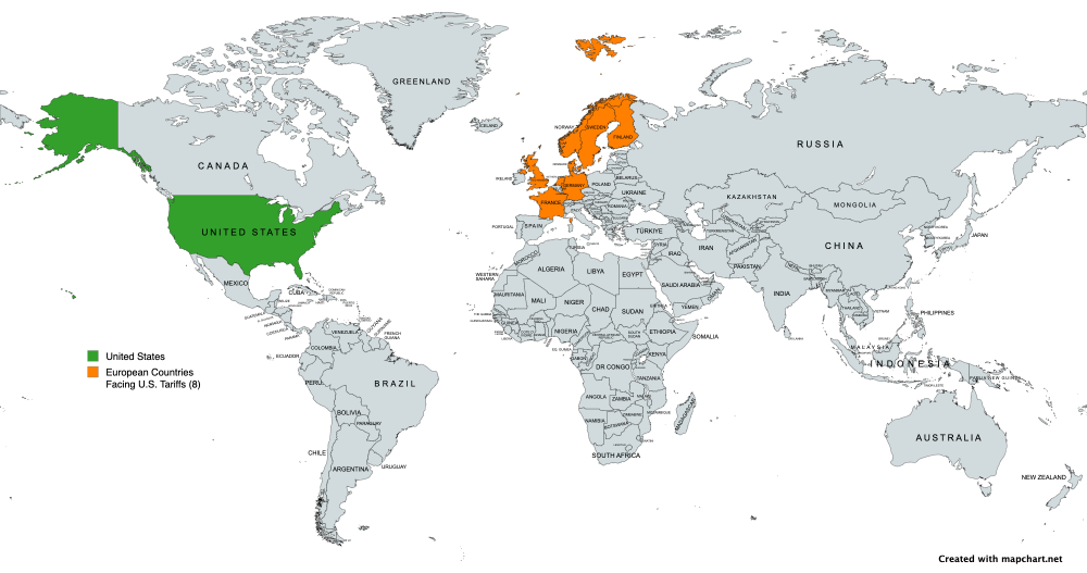 On Saturday, Trump said the United States would impose a 10% tariff on imports from Denmark, Norway, Sweden, France, Germany, the United Kingdom, the Netherlands, and Finland starting February 1. He added that the rate would rise to 25% on June 1 if negotiations over Greenland do not produce what he described as a satisfactory outcome. The president framed the tariffs as a response to recent deployments of small military units to Greenland by several European NATO members.