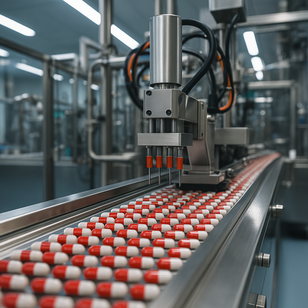 Illustrated view of a pharmaceutical production line. A new US–UK agreement links higher British drug prices with tariff-free access for UK-made medicines entering the American market.