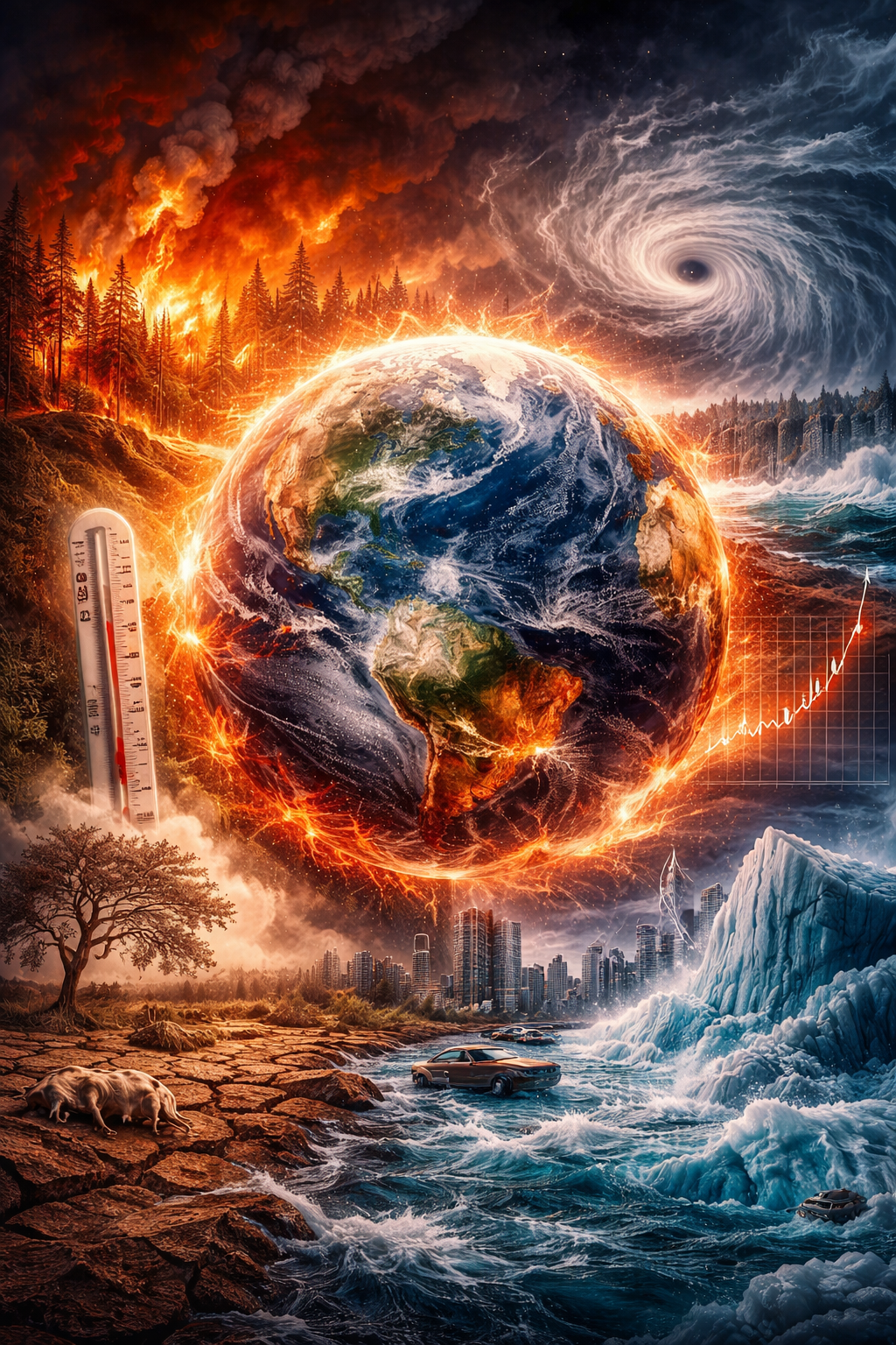 These physical changes are closely linked to growing risks for human societies. In 2025, extreme weather events, including heatwaves, floods, droughts, wildfires, and tropical cyclones, caused thousands of deaths and billions of dollars in damage. Beyond immediate destruction, these events disrupt food production, strain water resources, and force people from their homes. Over the past decade, weather related disasters have displaced hundreds of millions of individuals.